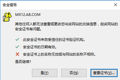 未加入负载池中还正常,昨天将这台加入负载池中后,内网中客户端Outlook部分用户开始弹出警告(PC都加入域)!