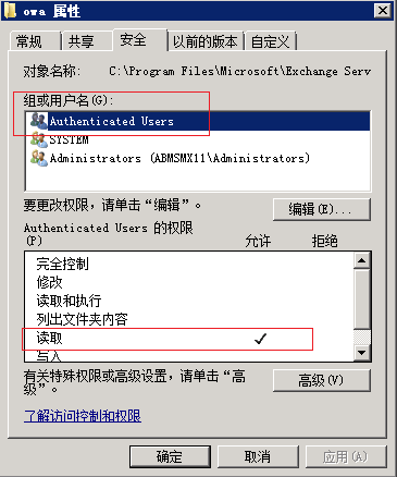 Exchange 2010 OWA 440 Login timeout 2016-6-2 zzy Exchange (0) 修改了 OWA 登录界面,登录时发现页面错误 440 Login timeout 检查 IIS OWA 目录权限缺失手动添加 Authenticated Users 账户并仅赋予读取权限即可 再次打开,正常