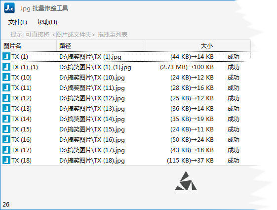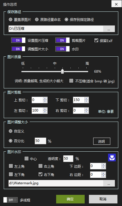 批量压缩、批量剪裁、批量大小修改、批量添加水印 ,
