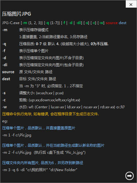 它可以根据自定的压缩级别将 jpg/jpeg 图片有效地减肥。