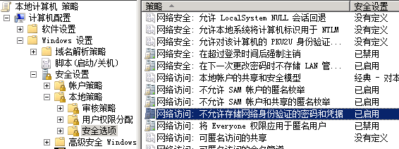 找到 网络访问: 不允许存储网络身份验证的密码和凭据 设置为 已禁用.