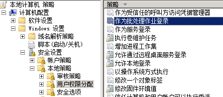 然后在用户权限分配中找到 作为批处理作业登录 添加相应帐户