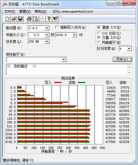 进入系统后使用 ATTO Disk Benchmarks_V2.47 做的测试
