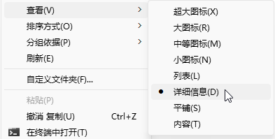 1. 在资源管理器中,仅限查看模式为 <详细信息>