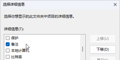 4. 找到并勾选 <备注>