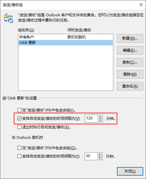 在 Outlook 中修改 OAB 更新频率