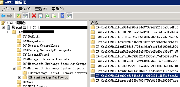 在 "Microsoft Exchange System Objects" - "Monitoring Mailboxes" 中可看到所有监视邮箱对象