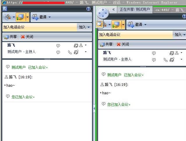 在以下的环境中将模拟ocs客户端匿名邀请对方加入会话,实现即时消息,共享桌面等功能。