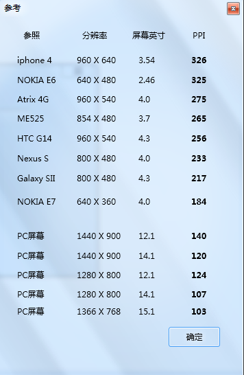 工具很棒~但希望能增加提供PPI和屏幕尺寸求分辨率的功能。