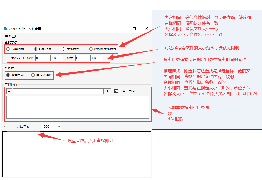 <搜索目录> 在指定的目录中(可多个)查���所有相同的文件。